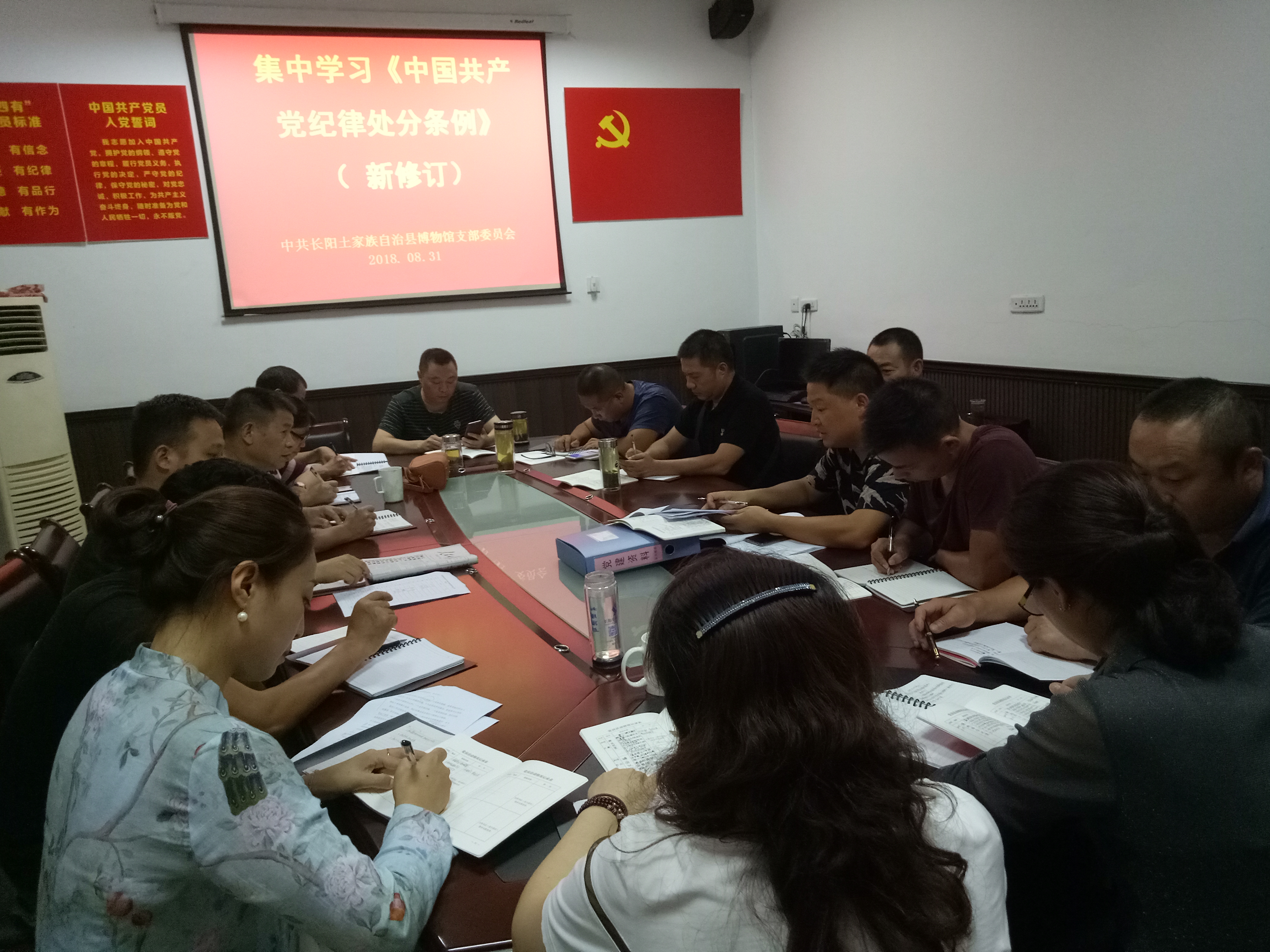 8月31日,长阳博物馆、长阳非遗保护中心全体党员、群众集中学习《中国共产党纪律处分条例》(新修订)。会上支部书记龚玉龙同志传达了中共文体新广局机关党委会议精神,对《条例》修订的背景、内容和要点进行了解读,强调人人从思想上高度重视,感受到“改革开放以来最全、最严党纪”。会上还组织学习了湖北省文物局关于推进打击文物犯罪专项行动工作的通知,一是要加强文物安全管理,二是要结合扫黑除恶专项斗争,配合开展打击文物犯罪工作。