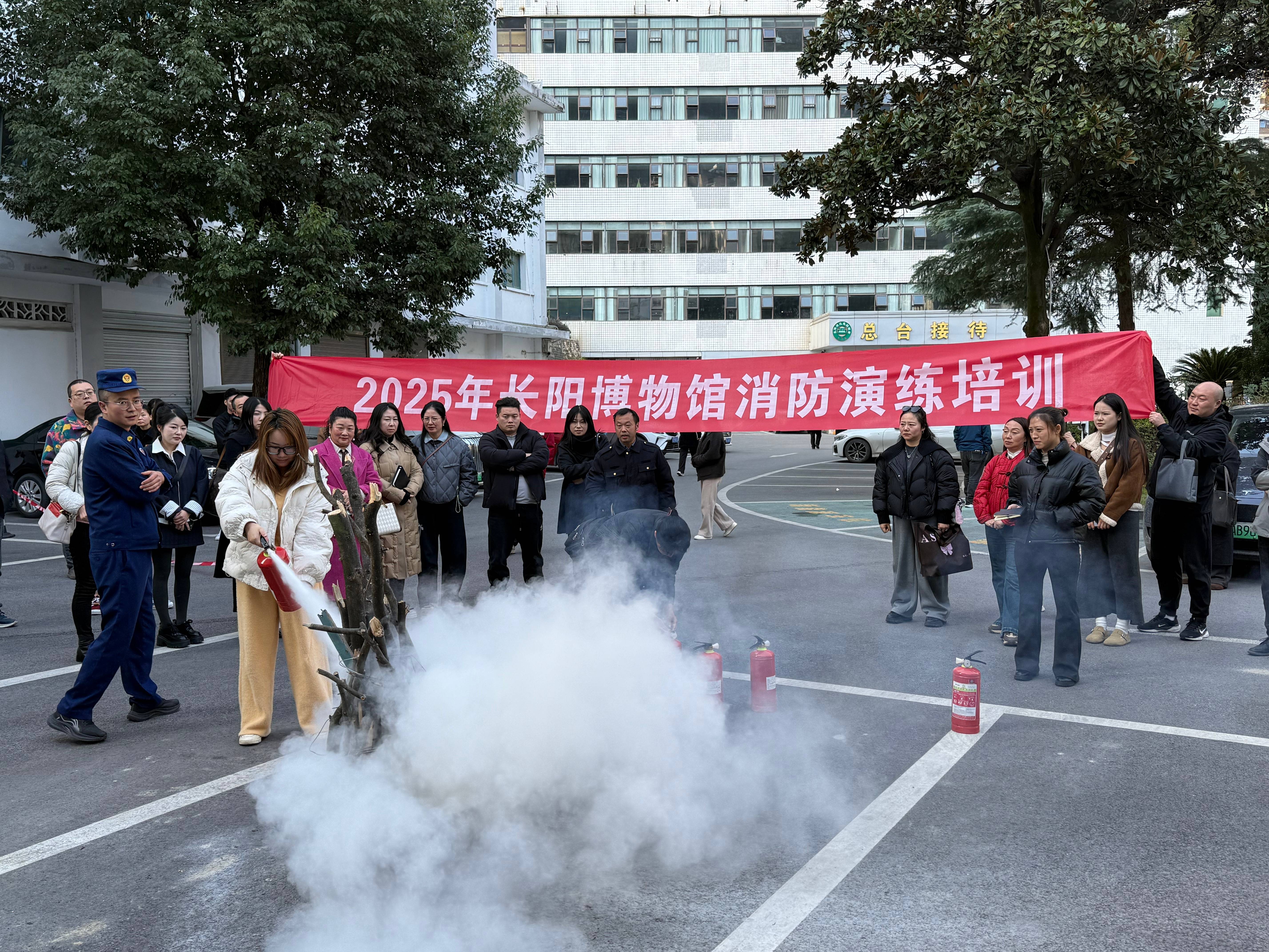 为强化文物消防安全管理,提升工作人员应急处置能力,11月20日,长阳博物馆组织员工及安保人员开展消防演练培训,以实战化方式筑牢文物安全防线。 培训现场,消防教官通过理论讲解与实操演示结合的方式,重点普及火灾预防知识、初期火情处置技巧及灭火器、消防栓等器材的正确使用方法。实操环节中,参训人员分组进行灭火器扑火演练,按照“提、拔、握、压”步骤规范操作,同步开展模拟火情下的人员疏散与文物保护应急演练,切实提升应急协同能力。