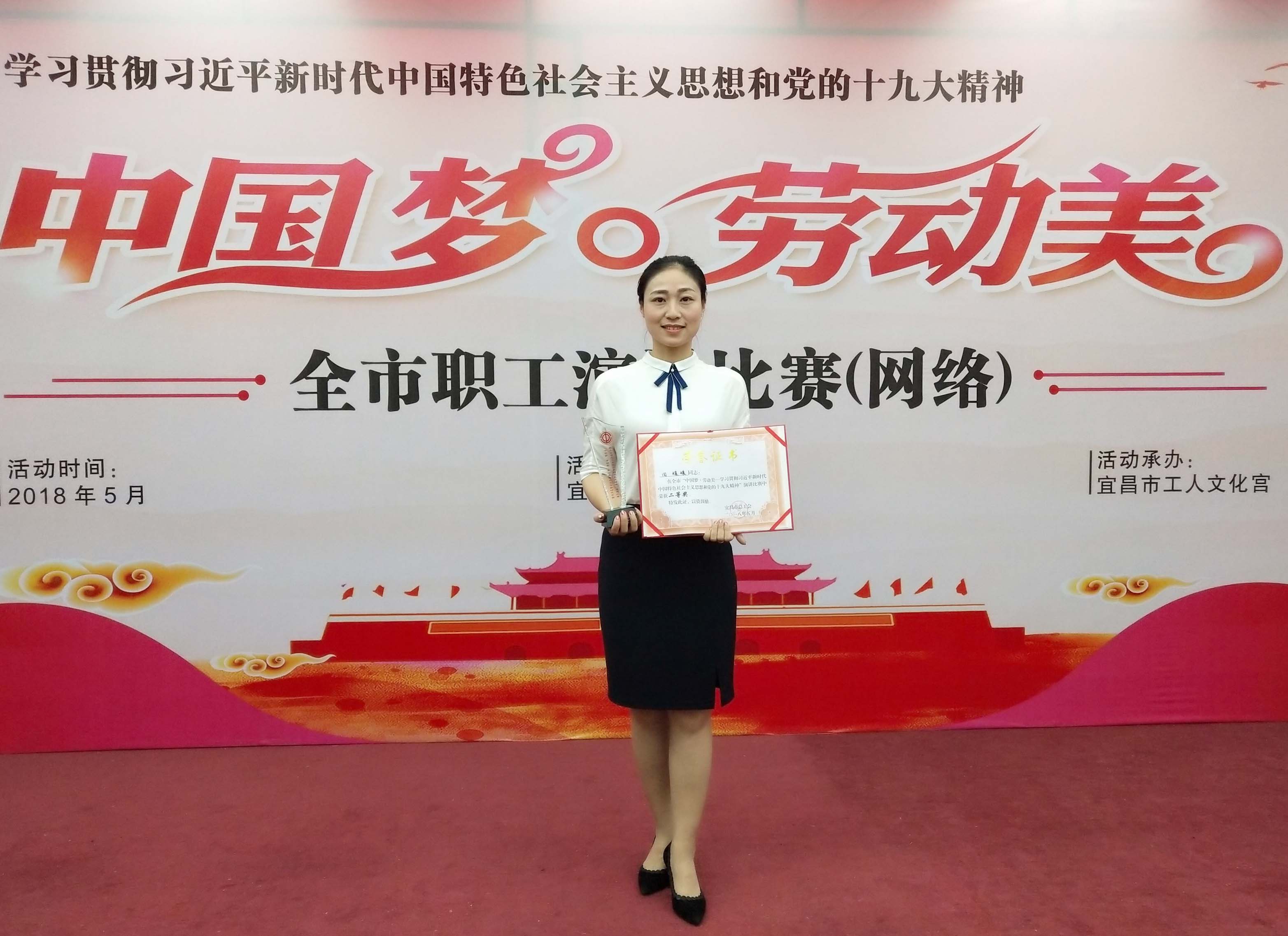 宜昌市“中国梦.劳动美——学习贯彻习近平新时代中国特色社会主义思想和党的十九大精神”全市职工演讲比赛5月30日下午在市工人文化宫落下帷幕,经过激烈角逐,长阳博物馆田媛媛从来自全市的64名选手中脱颖而出,荣获二等奖。