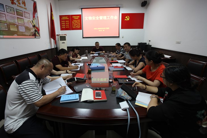 为深入贯彻落实《国务院办公厅关于进一步加强文物安全工作的实施意见》和《湖北省文物安全管理办法》及省、市文物工作会议精神,进一步加强文物安全管理,强化安全责任,确保文物安全,6月29日下午,县文体新广局、文物局召开了文物安全管理工作会议。 会上,文物局局长罗建平传达了省、市文物安全管理培训相关内容和省文物局局长黎朝斌在文物安全管理培训会上的讲话;县文体新广局副局长宗志玺结合我县实际,对做好文物安全管理工作提出了相关要求;与会人员集中学习了《国务院办公厅关于进一步加强文物安全工作的实施意见》和《湖北省文物安全管理办法》;文物局局长罗建平强调:一要提升政治站位,强化底线意识,坚决守住文物安全的底线、红线和生命线;二要提高工作效率,注重实干,狠抓落实;三要履职尽责,勇于担当;四要加强宣传,引导社会广泛参与。最后对近期开展汛期文物安全检查和进一步落实省级以上文物安全保护“一处一策”做了具体部署。