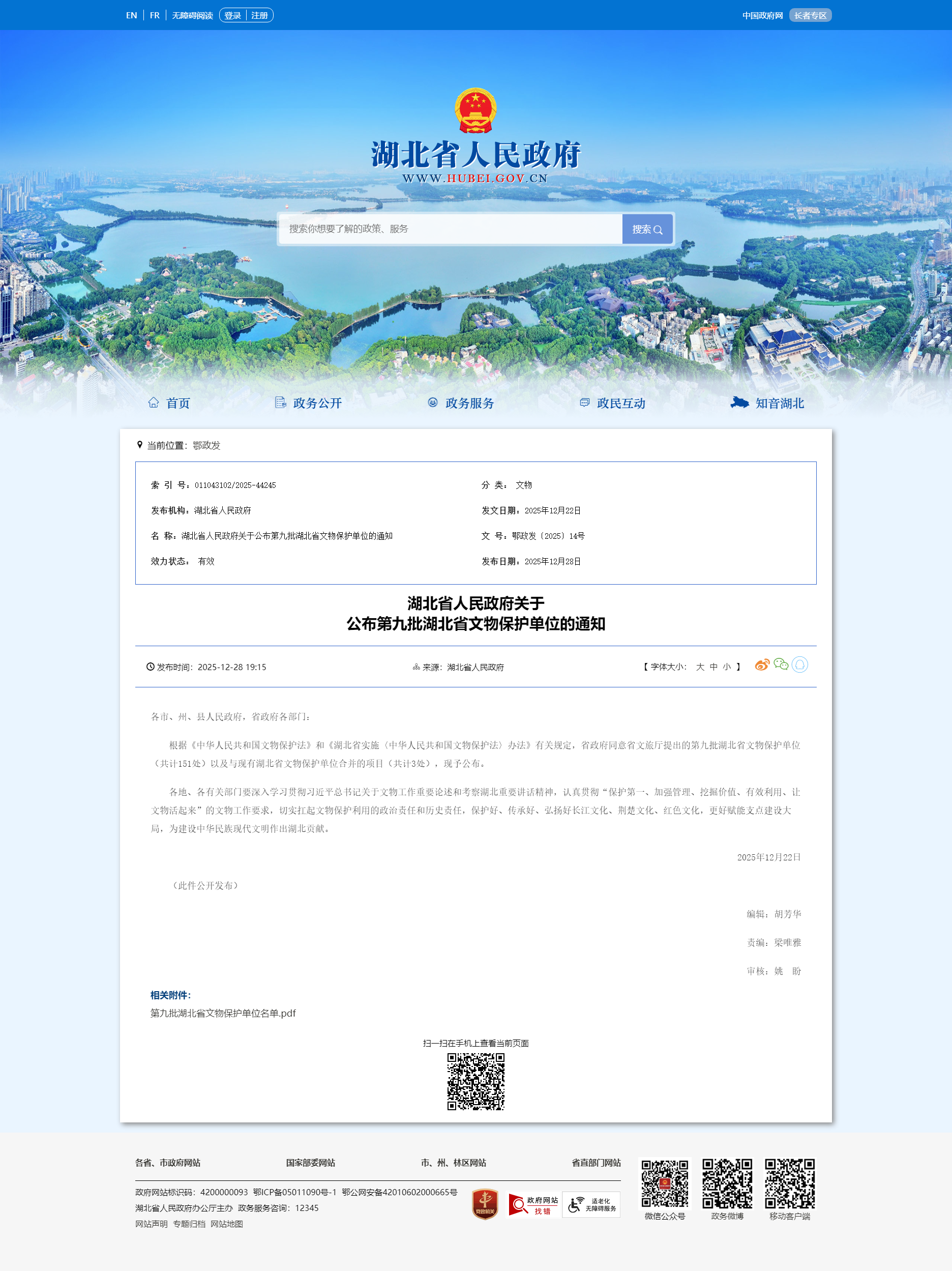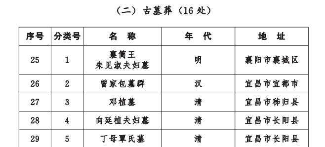 2025年12月28日,湖北省人民政府公布“第九批湖北省文物保护单位名单”,我县申报的向廷植夫妇墓、丁母覃氏墓被湖北省人民政府公布为第九批湖北省文物保护单位。我县省级文物保护单位增加为10处。