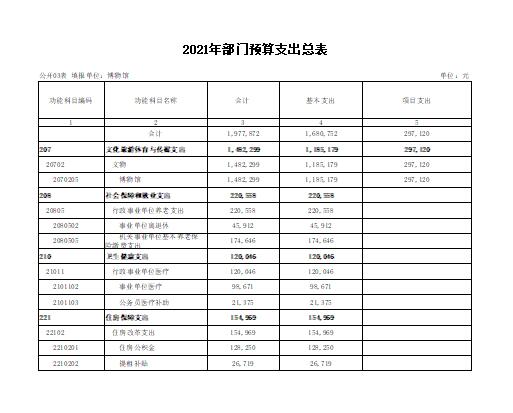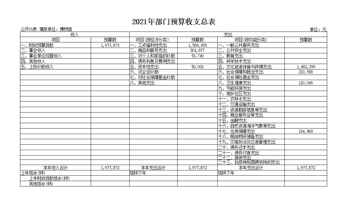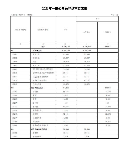 长阳博物馆2021年部门预算表(公开表)